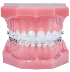Ортодонтичні конструкції, які використовують для корекції неправильного прикусу. Вони підбираються під колір емалі зубів пацієнта, тому менш помітні, аніж класичний металевий варіант.